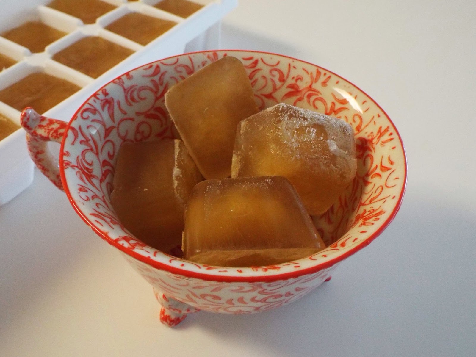 2. After a few mins, take out the bag, and pour your tea into some ice cube trays! (Be